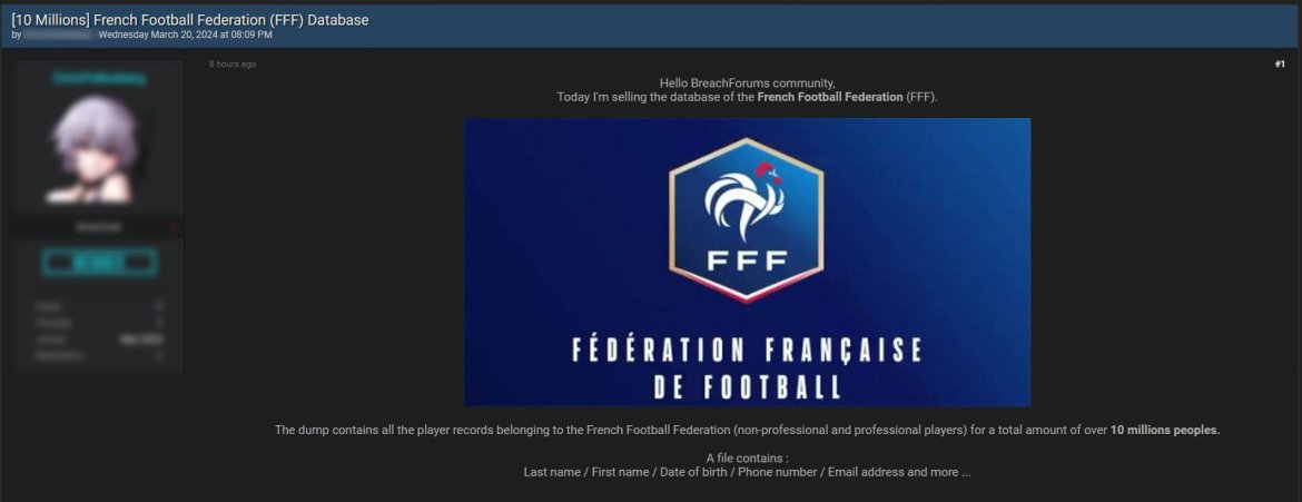 Recent reports have surfaced on a hacking forum claiming the sale of a database purportedly containing over 10 million records associated with French football, including those of non-professional and professional players.
